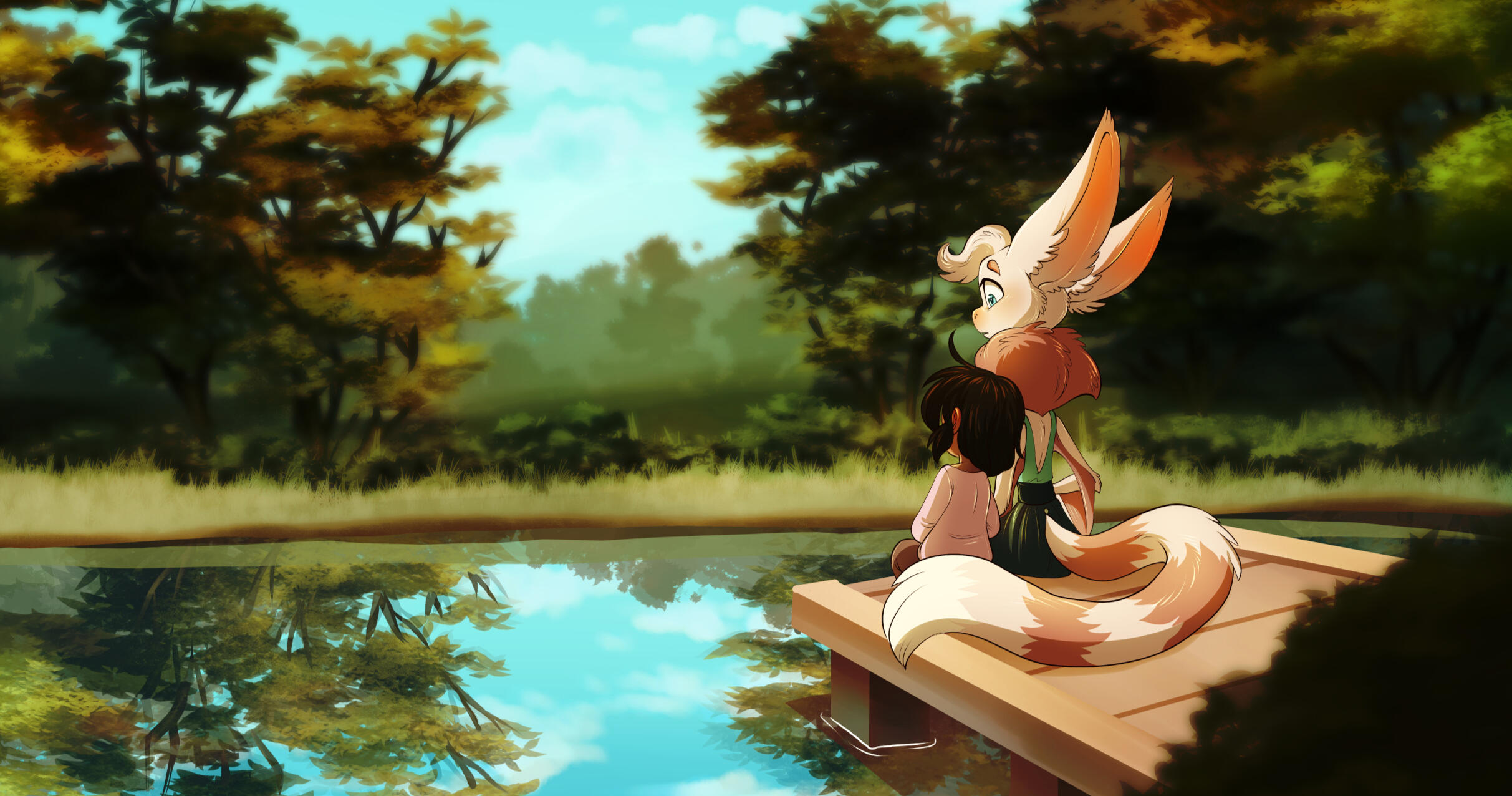 Scene studies are fully-rendered scenes depicting your character in a situation or environment. Usually focused on telling a narrative, but it depends on the client's requests. Comes with a simple background; a more complex background can be requested for an additional fee.