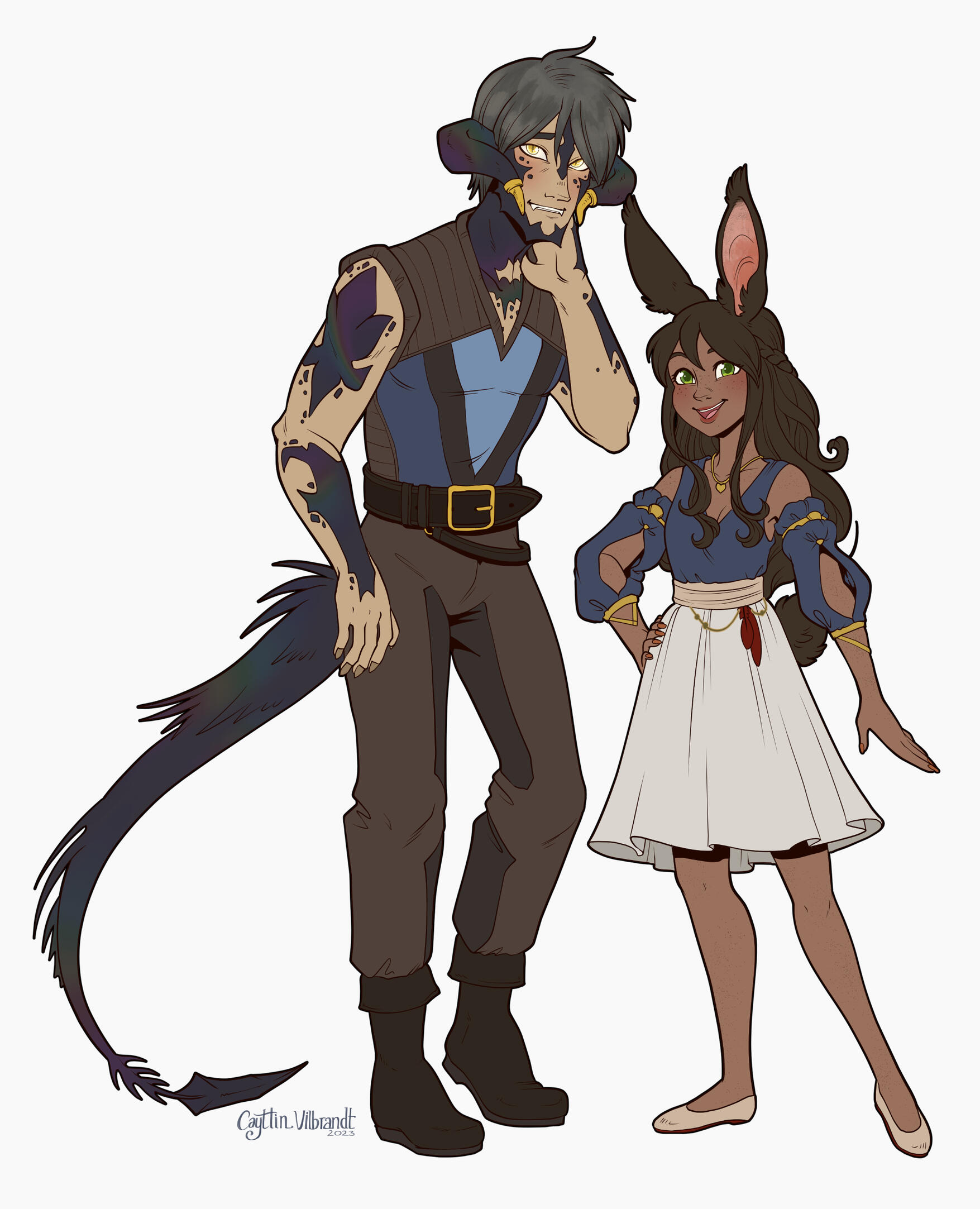 Once they make it to Eorzea, they start scratching out their own lives as adventurers, training for whatever Hydaelyn needs. Vari starts training as a Dancer, and Ephum starts training as a paladin as he finds power in his feelings for Vari and his desire to keep her safe.A chance adventuring job saving Sultana Nanamo ul Namo from hungering voidsent leads them to the arms of the Scions of the Seventh Dawn. His clear power of the Echo and her support leads Minfillia to recruit them and so they move into the Waking Sands to start a new chapter. Ephum begins running missions with the Scions, while Vari joins Urianger in the research department while she trains in Thavnairian Dancing on the side.Under this paradigm, the two of them finally admit their feelings for each other -- much to the amused relief of the other Scions, since it was painfully clear to anyone but them that they're head over heels for each other.The Beast Emerges