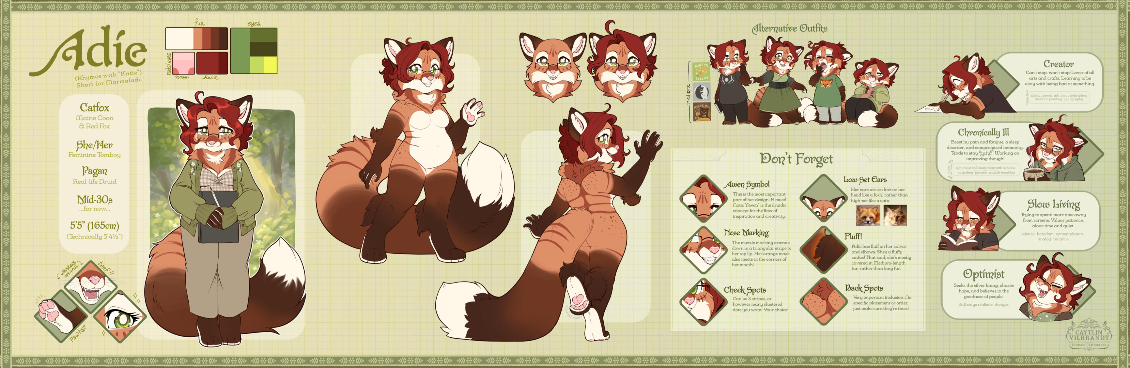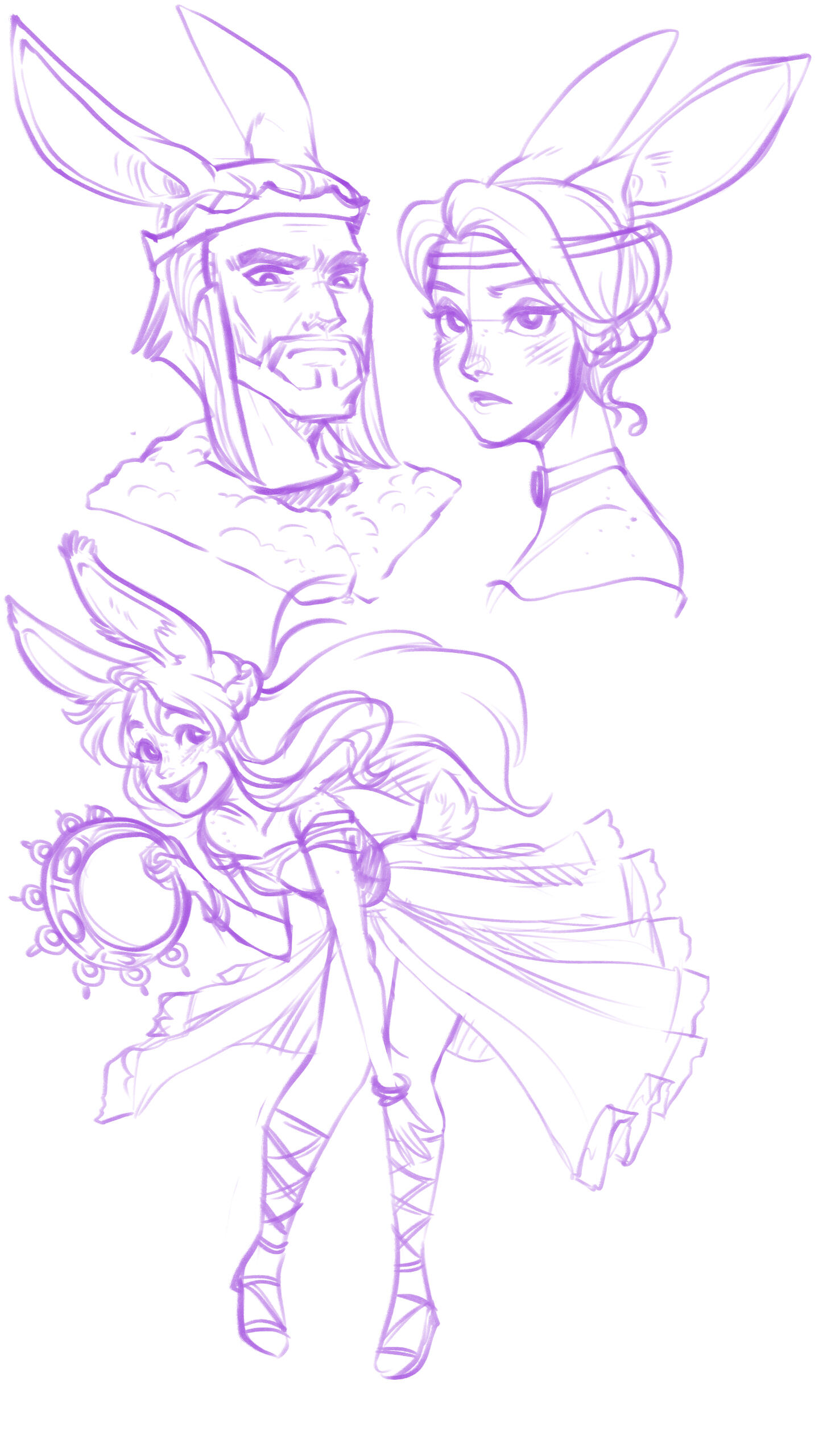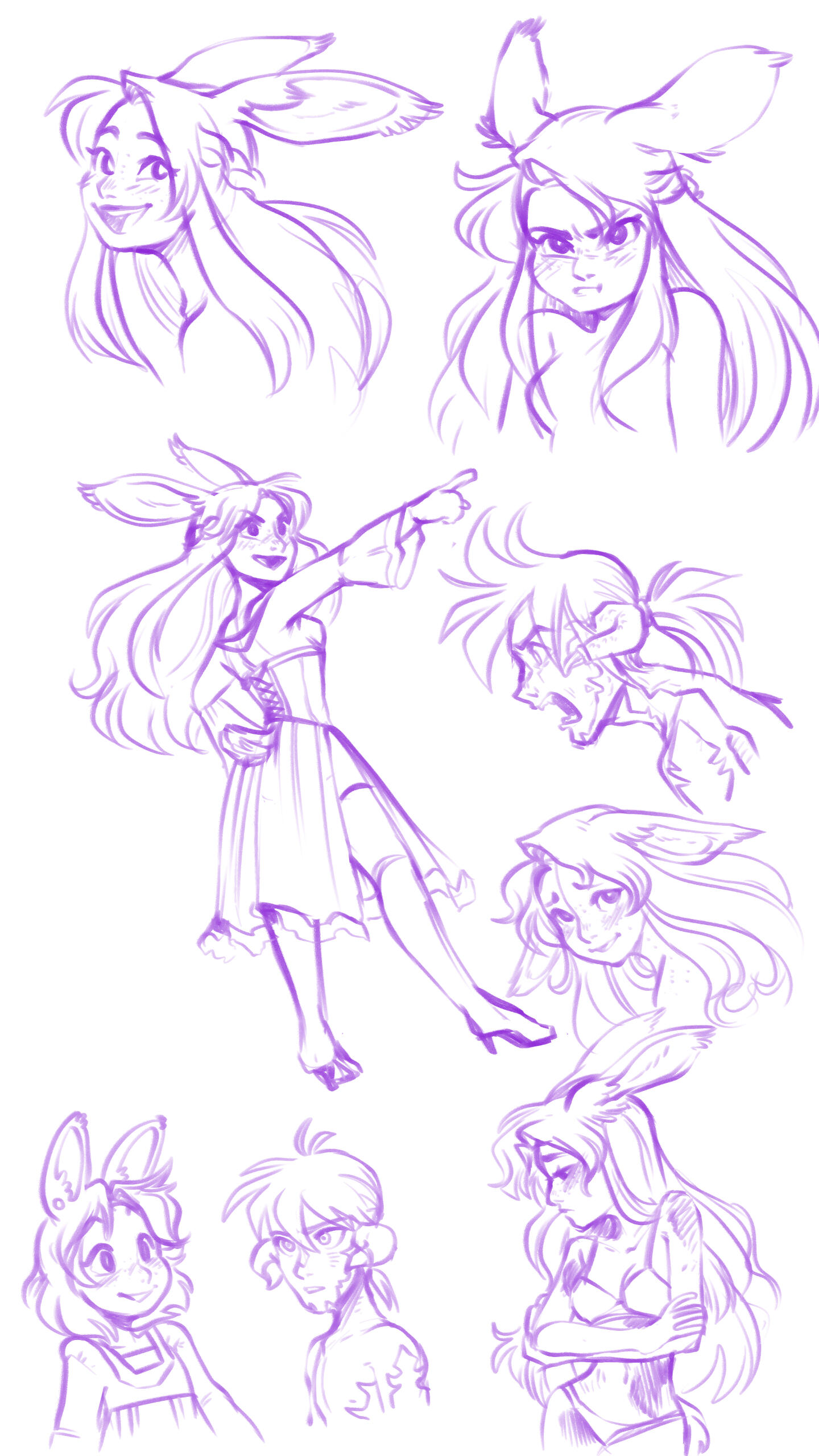 For more references, check out my stickers! There's tons of examples of Hare and Adie there.Do note that Adie's markings have changed over the course of making those stickers: the forehead marking of the Awen symbol, as shown in her reference sheet above, is correct!